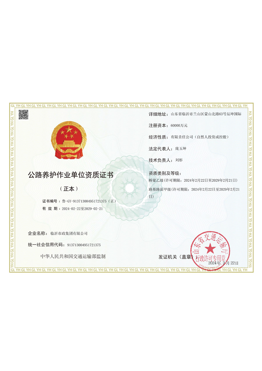 公路养护作业单位资质证书